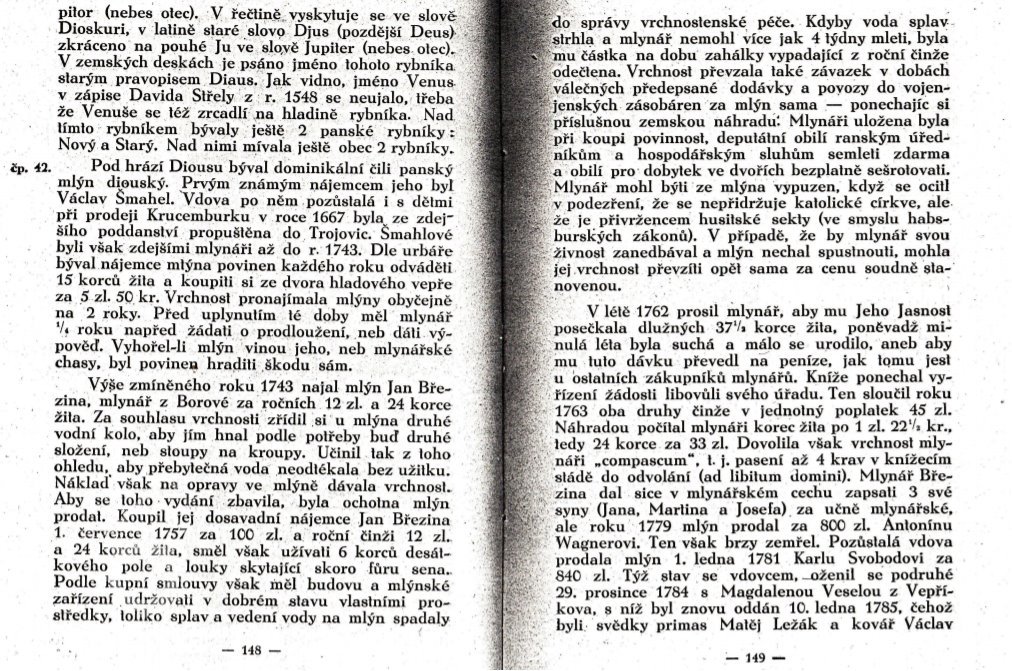 1743 nájemce Jan Březina, mlynář z Borové, syn mlynáře Jiřího Březiny, ročně odvádí 12 zl. a 24 korce žita