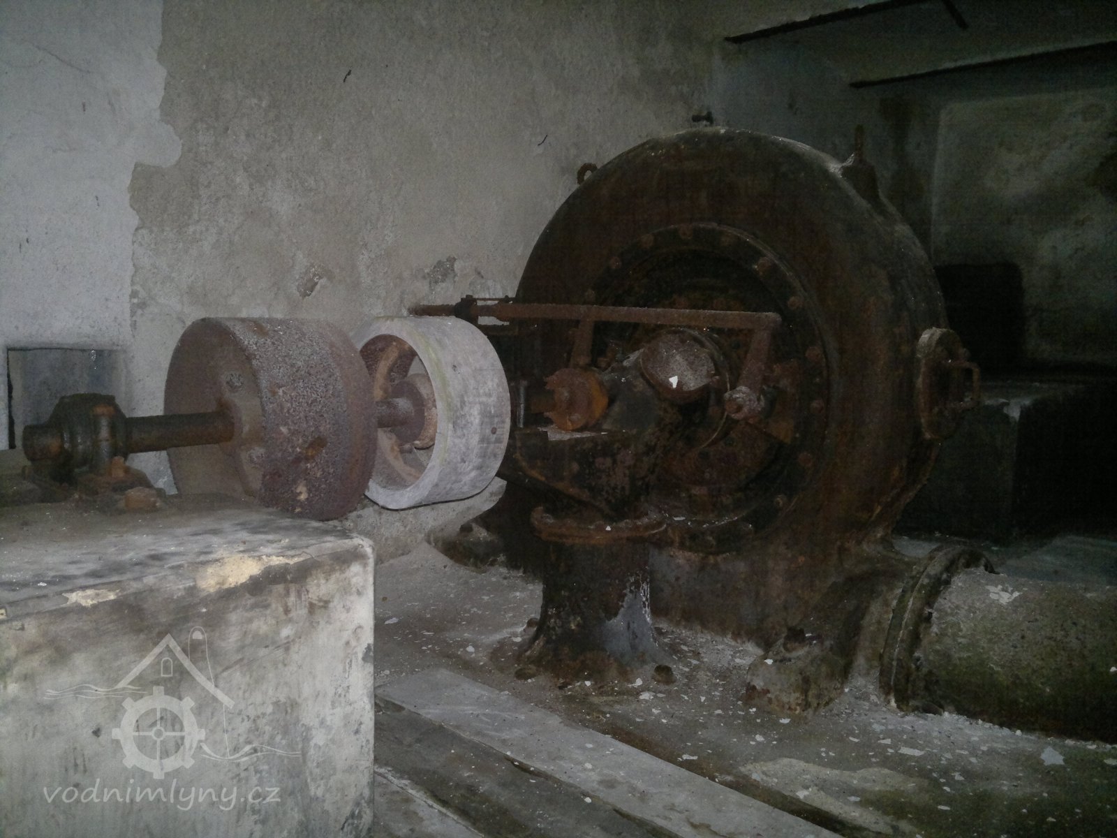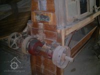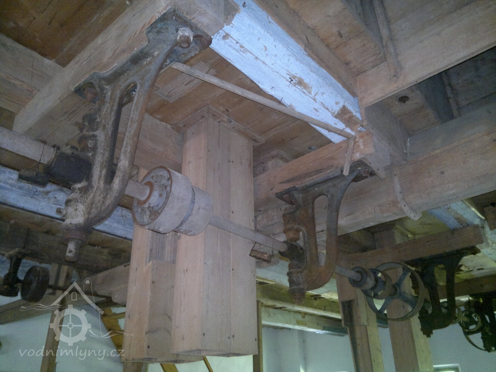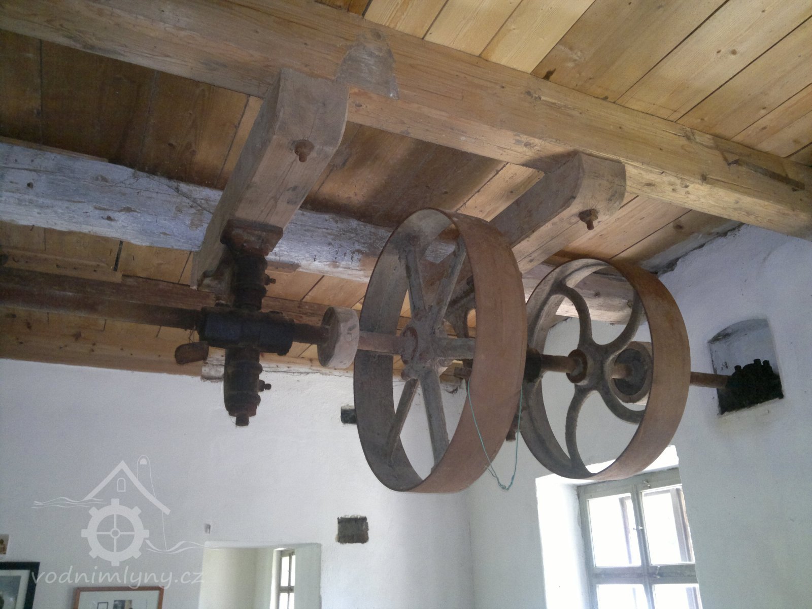 hlavní hnací transmise v podkolí mlýna, 2012, © David Veverka, (Prvky na obrázku: transmise, řemenice, převody)