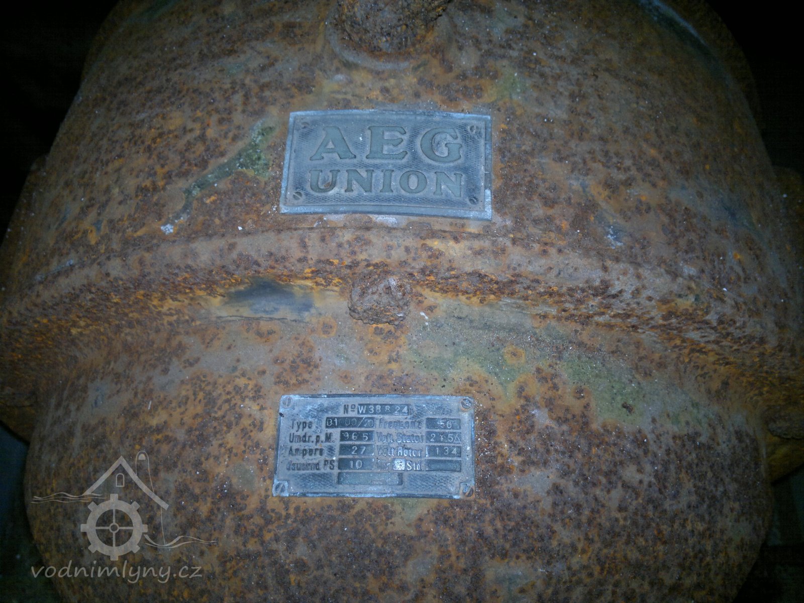 štítek výrobce plynosacího motoru na plynovém vyvíječi, 2012, David Veverka, Prvky na obrázku: značka výrobce na pomocném motoru
