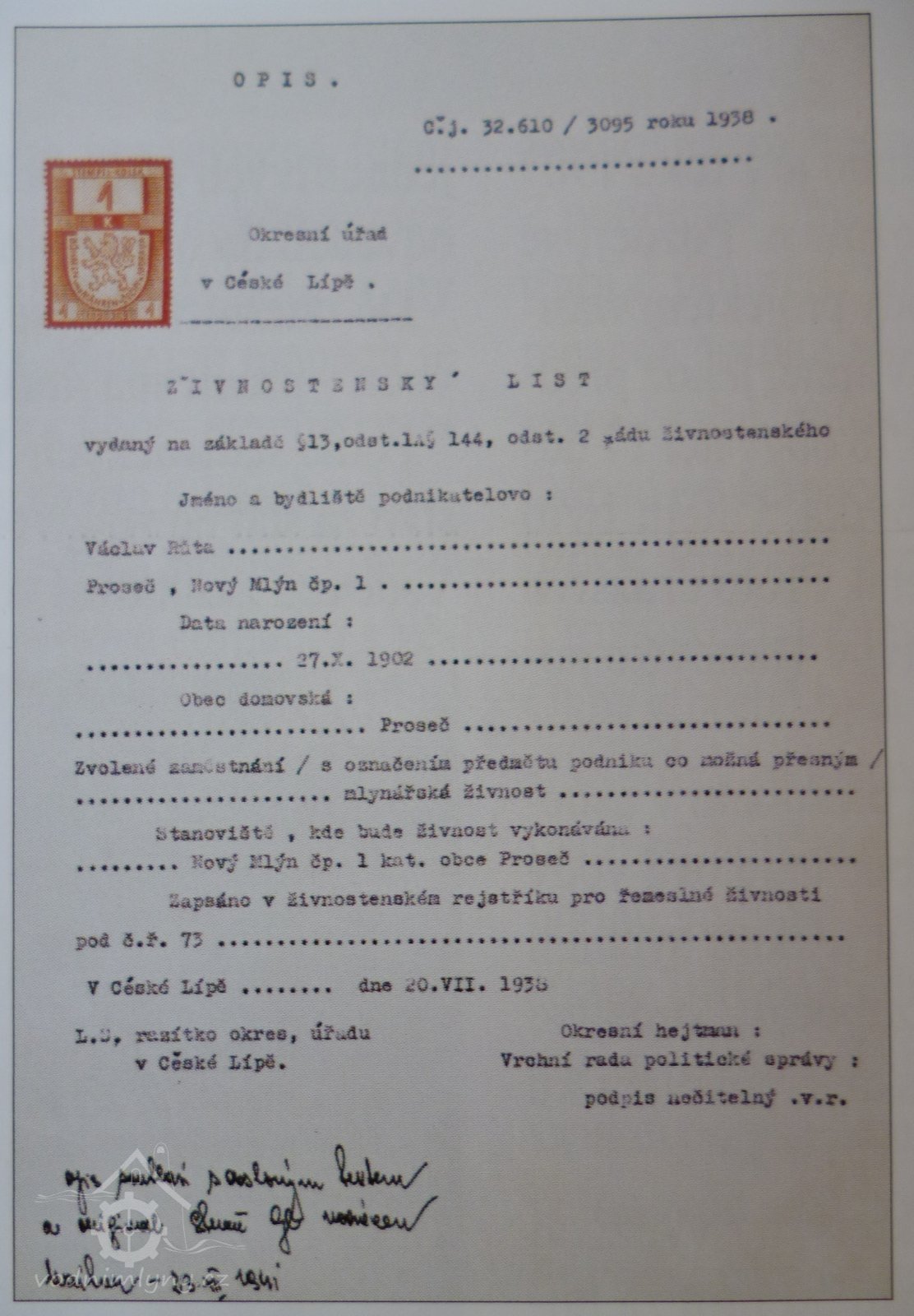 Mlynářem, pro kterého vrchnost tyto podmínky připravila, byl Mates Köhler. Od něho koupil 16. 2. 1714 nově vybudovaný mlýn jeho syn Christoph Köhler za 130 kop. Při koupi zaplati 10 kop a mlýn splácel do roku 1743. Ve smlouvě je poznamenáno, že Mates přidal svému synovi i pilu a mlýnské potřeby. K mlýnu patřili všichni mleči z Proseče a Kostřice a 3 sedláci ze vsi Olšiny. (MH)