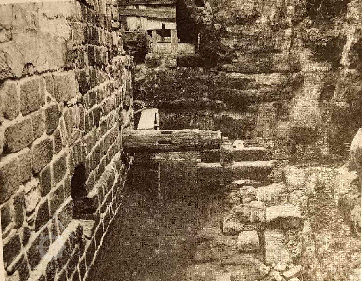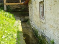 Vlevo od okna je dochována datace 1701, opakující se nad náhonem před mlýnem spolu s dalšími mladšími letopočty. V čelní stěně skalního masivu ústí náhon vedený štolou a následně otevřeným pískovcovým korytem mezi patou skalní stráně a místní komunikací až ke mlýnu pod kaplí sv. Antonína. Lednice s dochovanou hřídelí vodního kola na horní vodu je vymezena vysokou odlámanou stěnou a budovou mlýna.