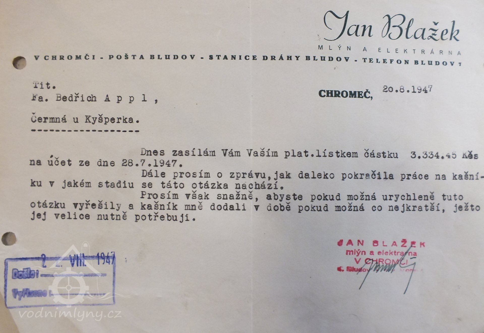V r. 1930 vlastnil mlýn a elektrárnu Rudolf Kordas.
