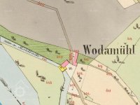 Mlýn byl původně v majetku řádu Jezuitů a užívalo se pojmenování " Schankstube in Wodamühle". Točilo se zde pivo z klášterního pivovaru v Běšicích. Špatný český překlad utvořil z Wodamühle - Vodní mlýn ( i u Chytila). Správně je Vodův mlýn.