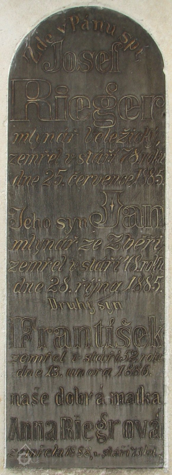 následuje mlynář Jan Rieger (narozený 1837, zemřel 28.10.1885)