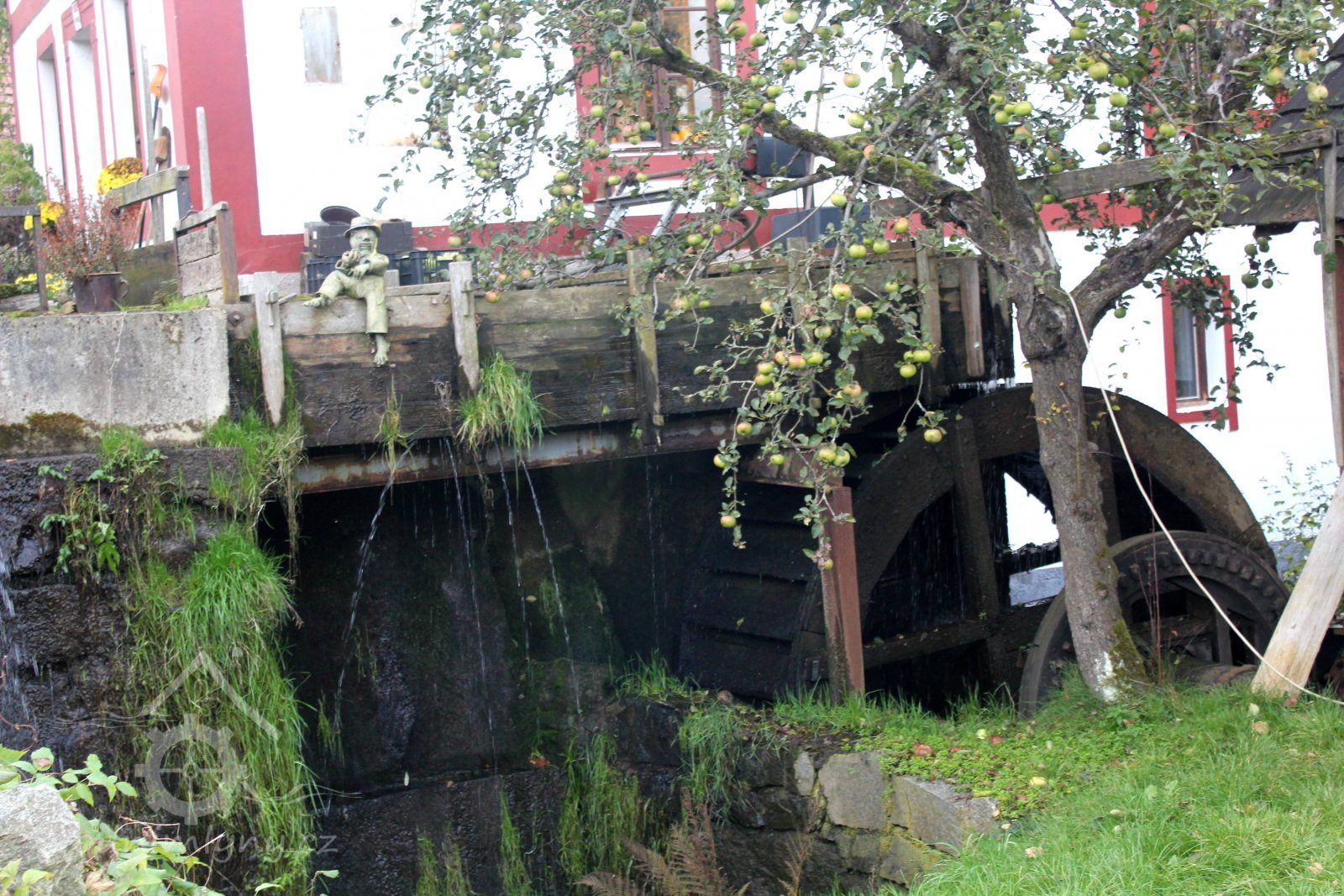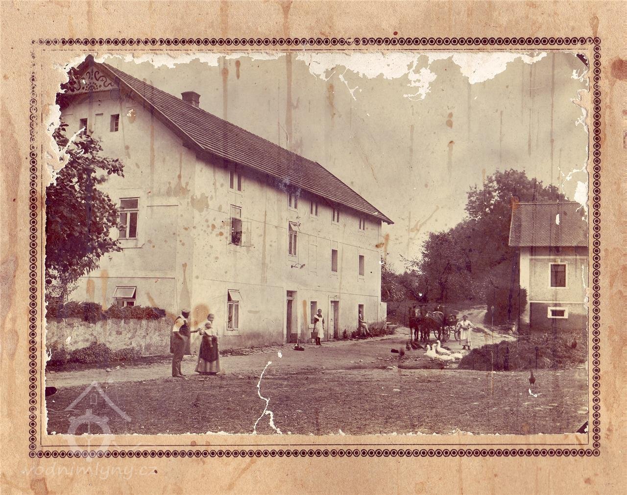 6té Před mlýnským stavením, kdy při velkých lijácích voda z kopců teče do mlýna, vrchnost ještě vedle tarasu nebo odvodnění zajistí také půdu nad obytnou budovou, a hned jak