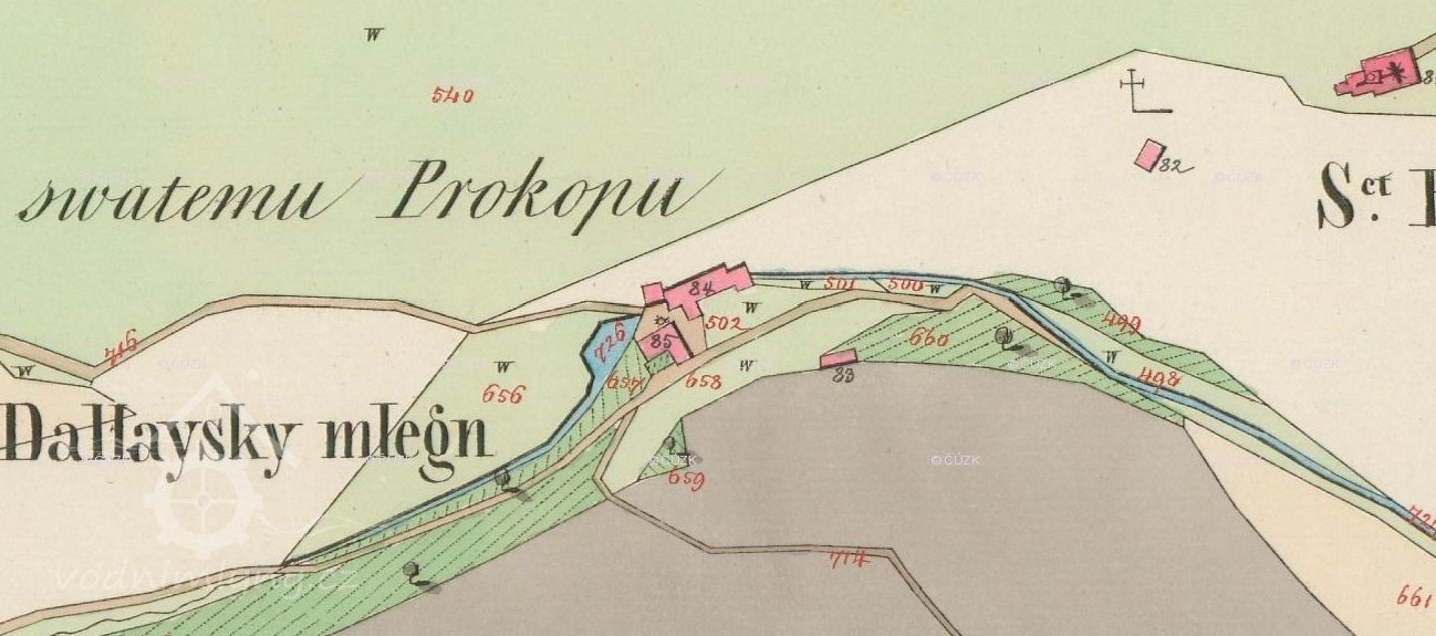 V opěrné zídce jihozápadně od mlýniště jsou zbytky dvou kovových trubek, kdysi tzv. Dalejská studánka, ve skutečnosti vyústění dosud částečně zachovalého vodojemu. Historii tohoto vodního zdroje neznám, každopádně musel v této podobě vzniknout až po zániku mlýna, protože vodojem se nachází v místech původní mlýnské nádržky.