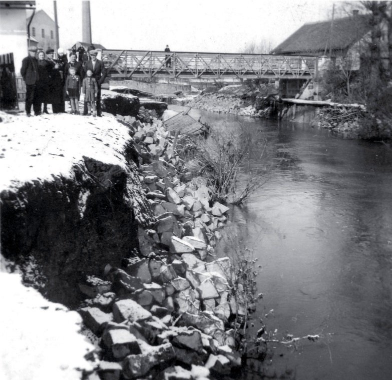Při katastrofálním odchodu ledu v březnu 1940 se daly do pohybu kry až 90 cm silné o ploše průměrně 25 m2 a větší část jezu jimi byla zničena a odplavena. Podjezí i s ukončující zídkou a vývarem zůstalo neporušeno.