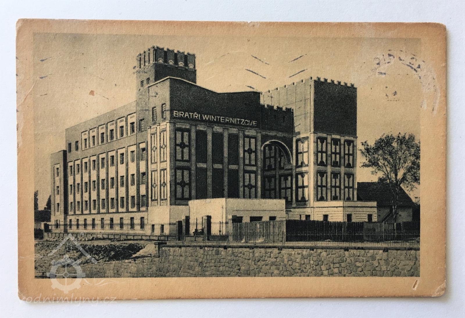 Pohlednice mlýna po poslední přístavbě arch. Gočára, 1926, © autor neznámý (fotoarchiv VČM)