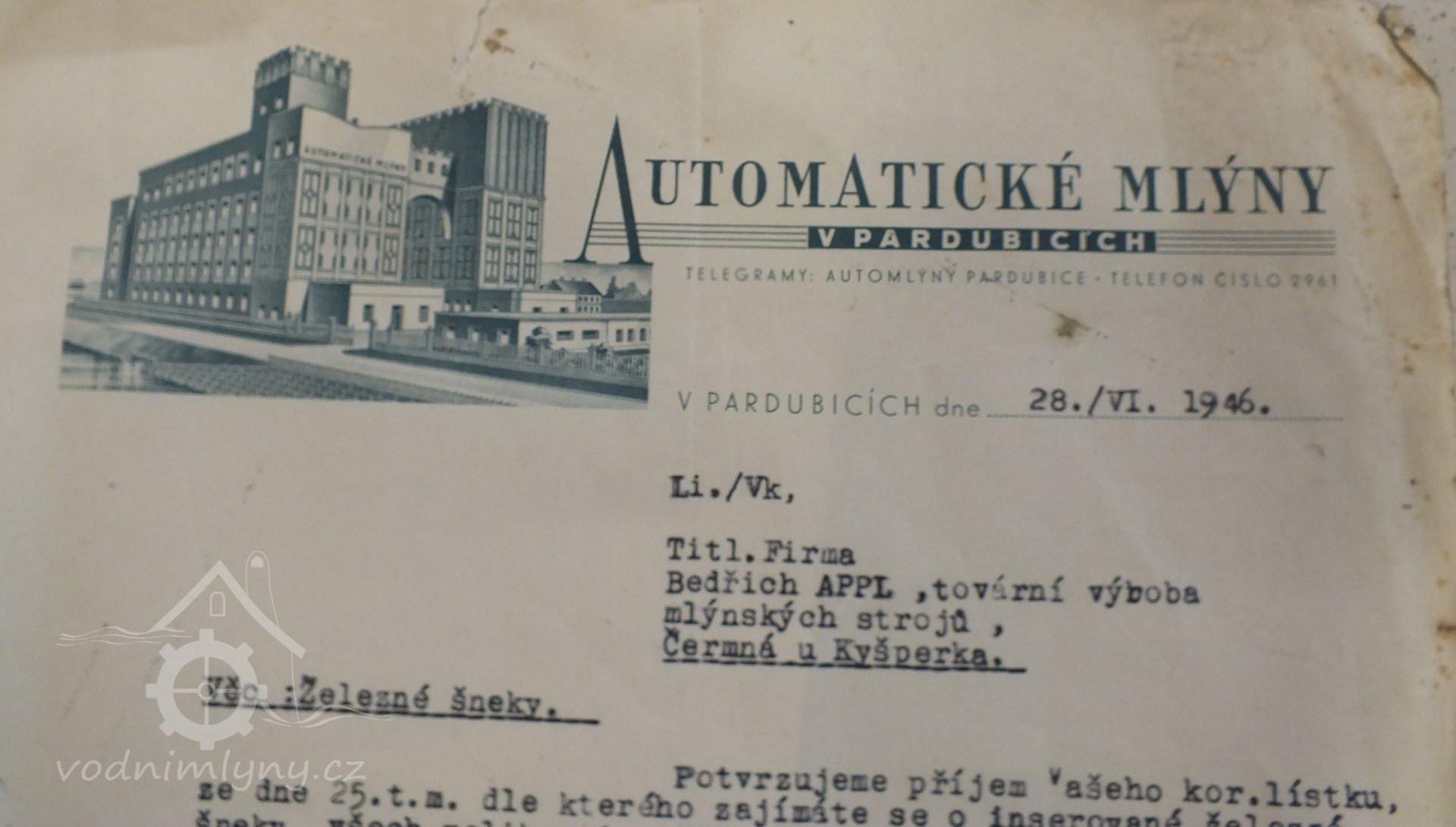 Pohlednice mlýna po přestavbě, 1936, © Pardubice na starých pohlednicích