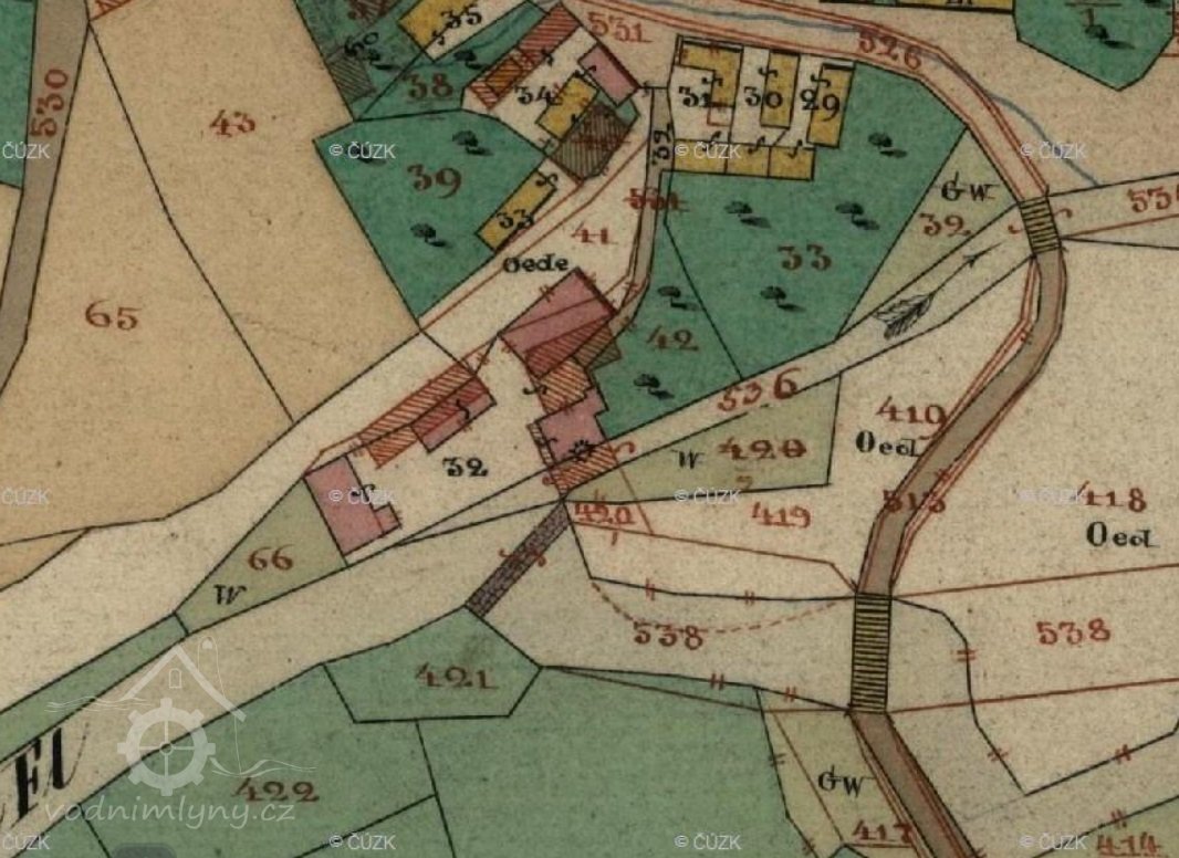 Popis1930: 1 turbína Francis, hltnost 3,5 m3/s, spád 1,5 m, výkon 50 HP