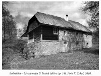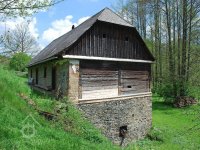 zděná stodola s roubenými výplněmi a rybník s podkovovitou sypanou hrází. Zbývající části vodního