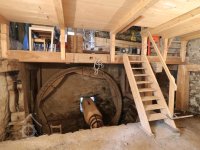 Jihovýchodní a jihozápadní stěna vrchního podlaží mlýnice je rovněž roubená do drážky, z druhotně použitého dřeva z let 1727-29. Nad celým domem je jediná podkrovní prostora polovalbové střechy, systému stojaté stolice, přesahuje nad zápražím. Spoje jsou čepované, jištěné dřevěnými kolíky - hřeby, veškeré dřevo j ručně opracované. Trámy krovu byly zhotoveny z jedlí kácených na přelomu let 1833/34.