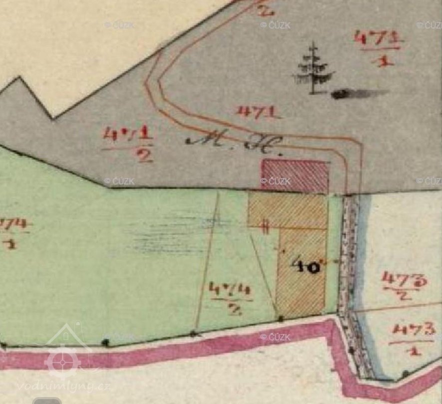 Popis závodu, hnací síla, počet HP, vnitřní strojní zařízení: Vodní kolo, 4-6 HP, 2 stolice válců na ploché mletí