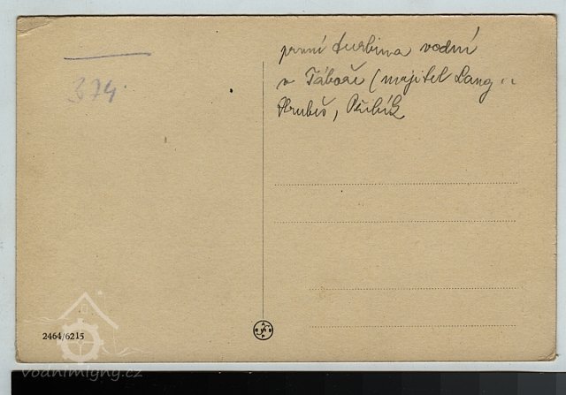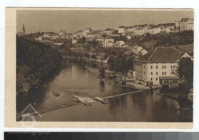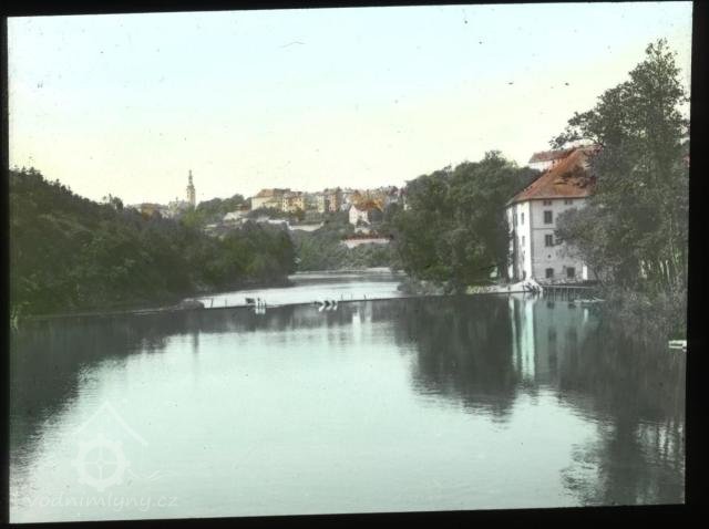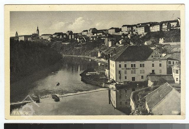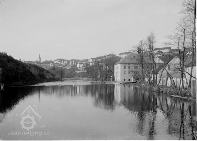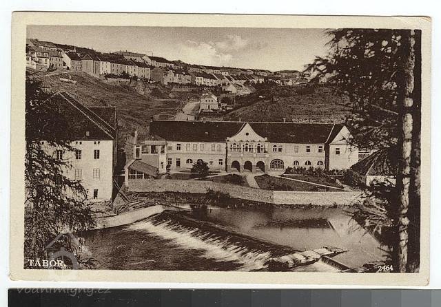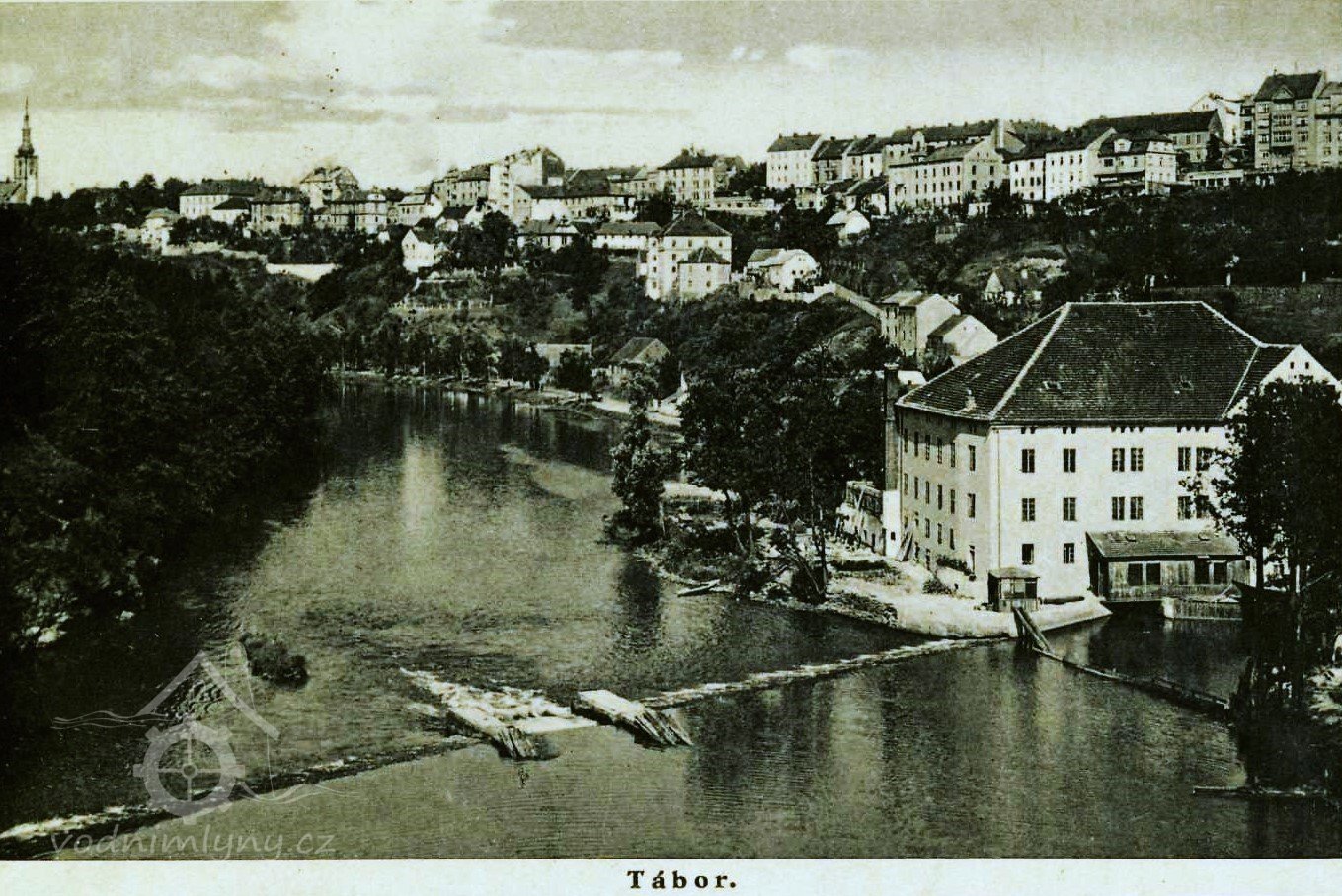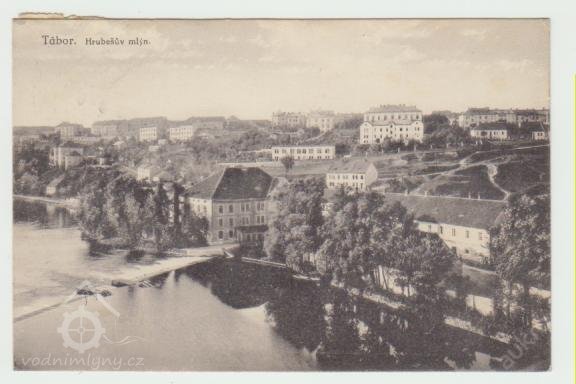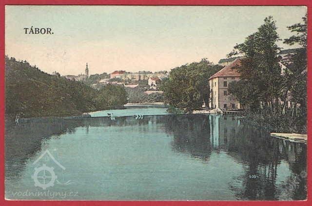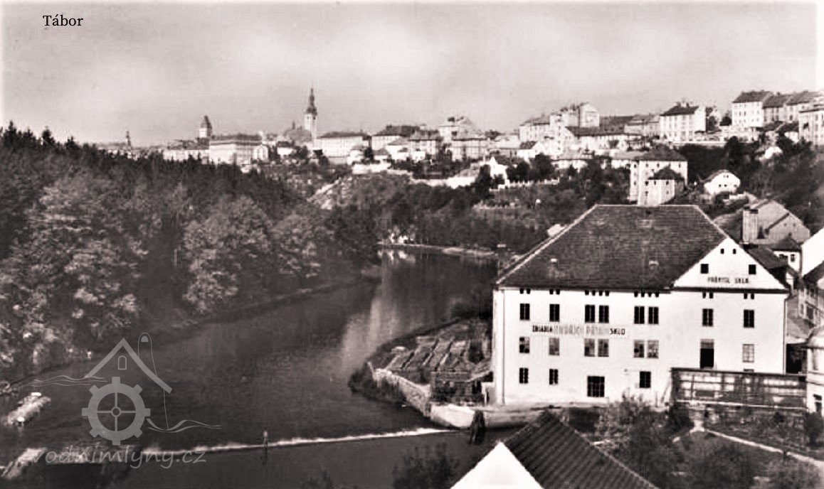 V tomto mlýně byla první instalovaná turbína v Táboře (nápis na pohlednici).