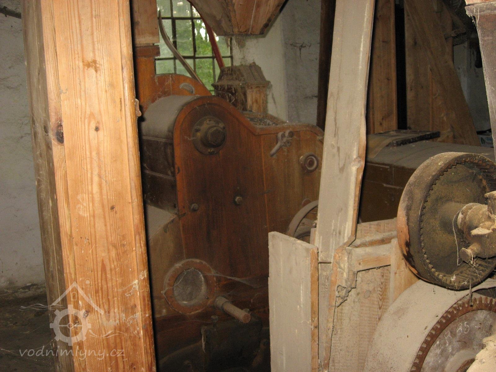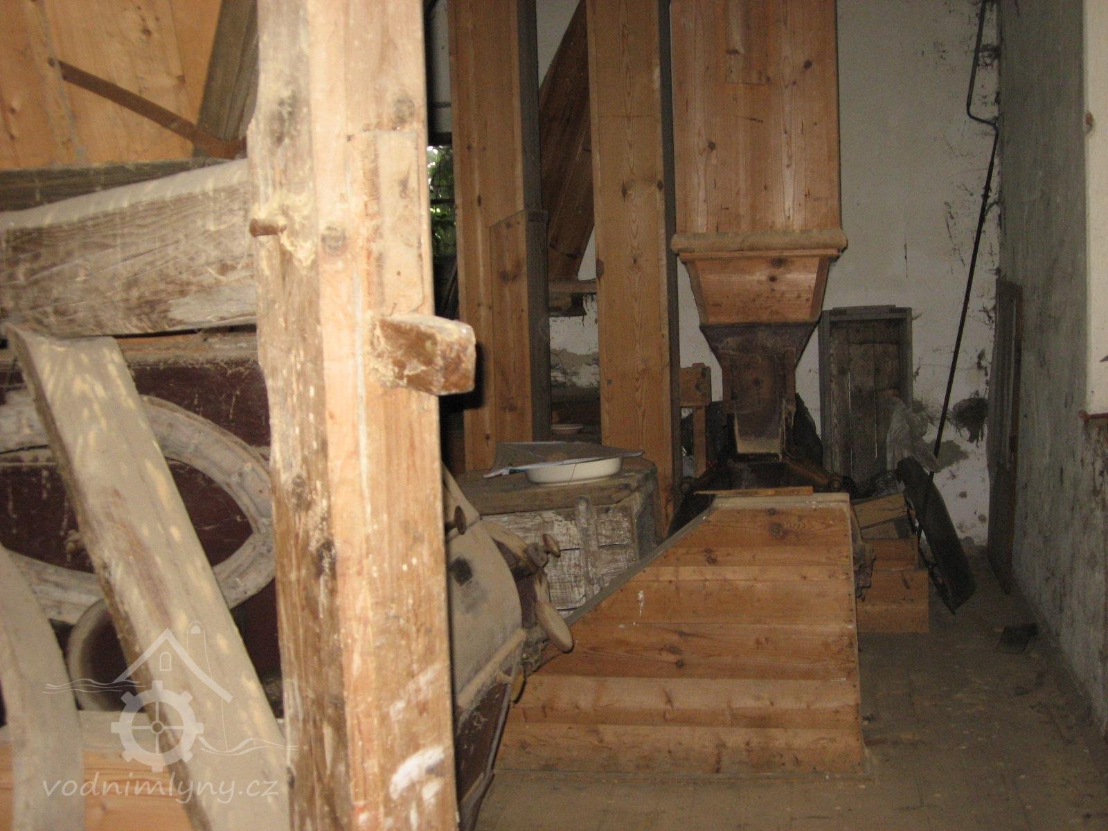 Interiér mlýnice je specifický v rozložení podlaží — spodní podlaží mlýnice se nachází v mírně zapuštěném suterénu, mlecí podlaha odpovídá úrovni zvýšeného přízemí a manipulační podlaha se svými dvěma úrovněmi je situována v prostoru podkroví. V interiéru se zachovaly segmentové záklenky oken a dveří s jejich původními výplněmi. Podlahy všech nadzemních podlaží jsou tvořené dřevěnými prkny, zatímco podlaha suterénu mlýnice je betonová. Mlýnice má několikaúrovňový vaznicový krov mansardové konstrukce s vrcholovou vaznicí a stojatými stolicemi. Vrcholová vaznice je podepřena svislým sloupkem. Podélné i příčné ztužení je tvořeno pásky, zatímco plná hlavní vazba je ztužena kleštinami. Tesařské spoje krovu jsou čepované.