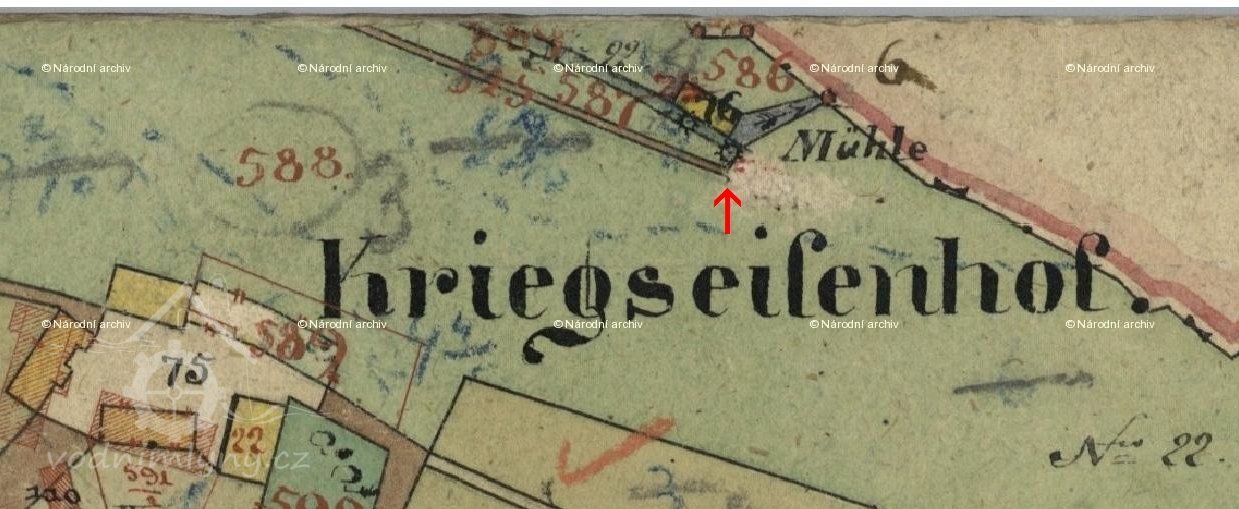 Nejstarší písemná zmínka o dvorci Kriegseisenhof je z r. 1654 , od r. 1722 poprvé uváděna jako součást dvorce také pila a mlýn. Od r. 1759 je statek označován podle jména majitelů jako Kriegseisenhof.