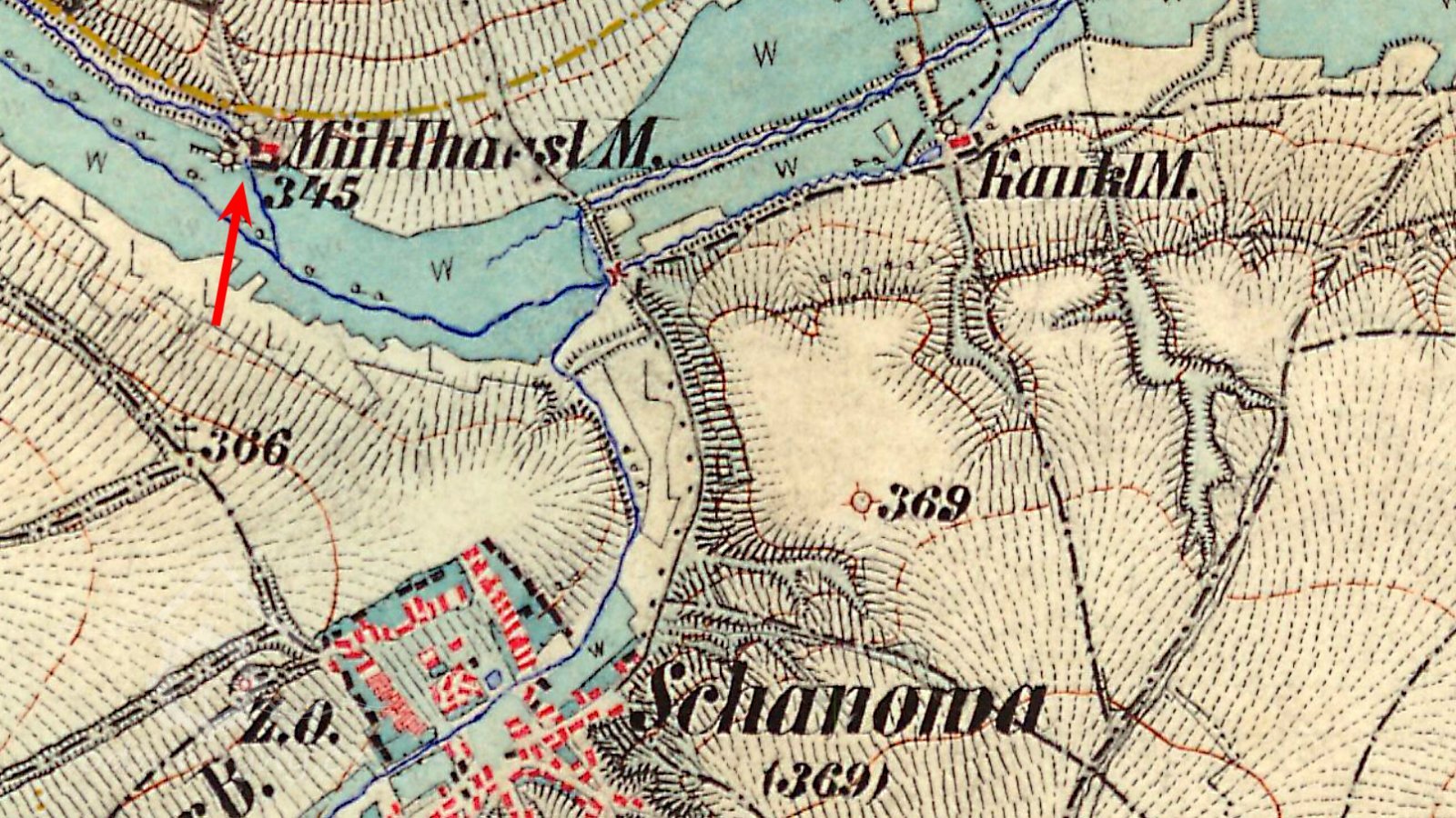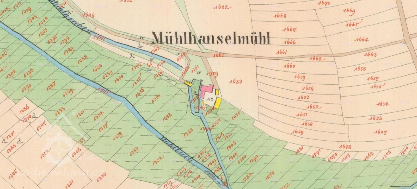 Název „Mühlhanselmühl“ je na mapách I. voj. mapování 1764 – 68 odvozen od tehdejšího mlynáře Jana Titlbacha. Jan byl synem Ondřeje Titlbacha, který provozoval druhý šanovský mlýn – Spálený, jehož nejstarší název je Kouklův mlýn, později No: 60