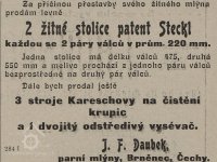 A tady je stručně zajímavá historie mlýna a rodu Daubků. Mlýn v Brněnci u Svitav koupil v roce 1854 zakladatel mlynářské generace rodu Daubků Josef František (1807-1882). Kromě podnikání byl Josef F, také velkým vlastencem. Byl jedním ze sedmi spoluzakladatelů Národního divadla. Po jeho smrti pokračoval v provozování jeho jediný syn Josef Šebastián (1842-1922). Josefa Š. povýšil císař František Josef I. roku 1896 do šlechtického stavu s rytířským titulem.