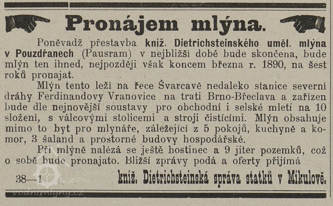 r. 1938 - mlýn stál v Sudetech a po jejich záboru se majitelé mlýna odstěhovali do Bystřice p. Hostýnem. Správcem mlýna se stal obecní hlídač.