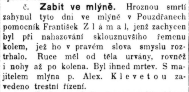 Zaznamenání katastrofy (požár, povodeň, zranění, úmrtí, aj.) První písemná zmínka o existenci vodního díla Vznik mlynářské živnosti