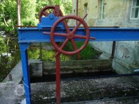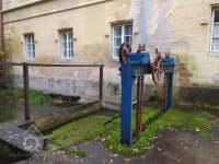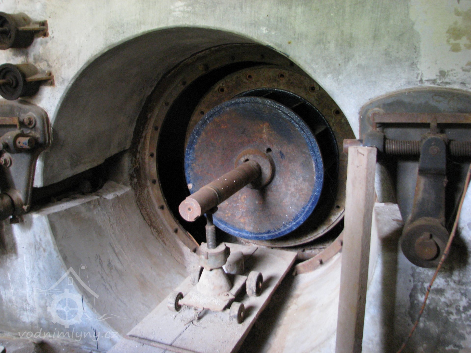 Popisv kašně zachovaná turbína z Union České Budějovice - ale zatím v provozu neschopném stavu (rozebraná, zanesená)