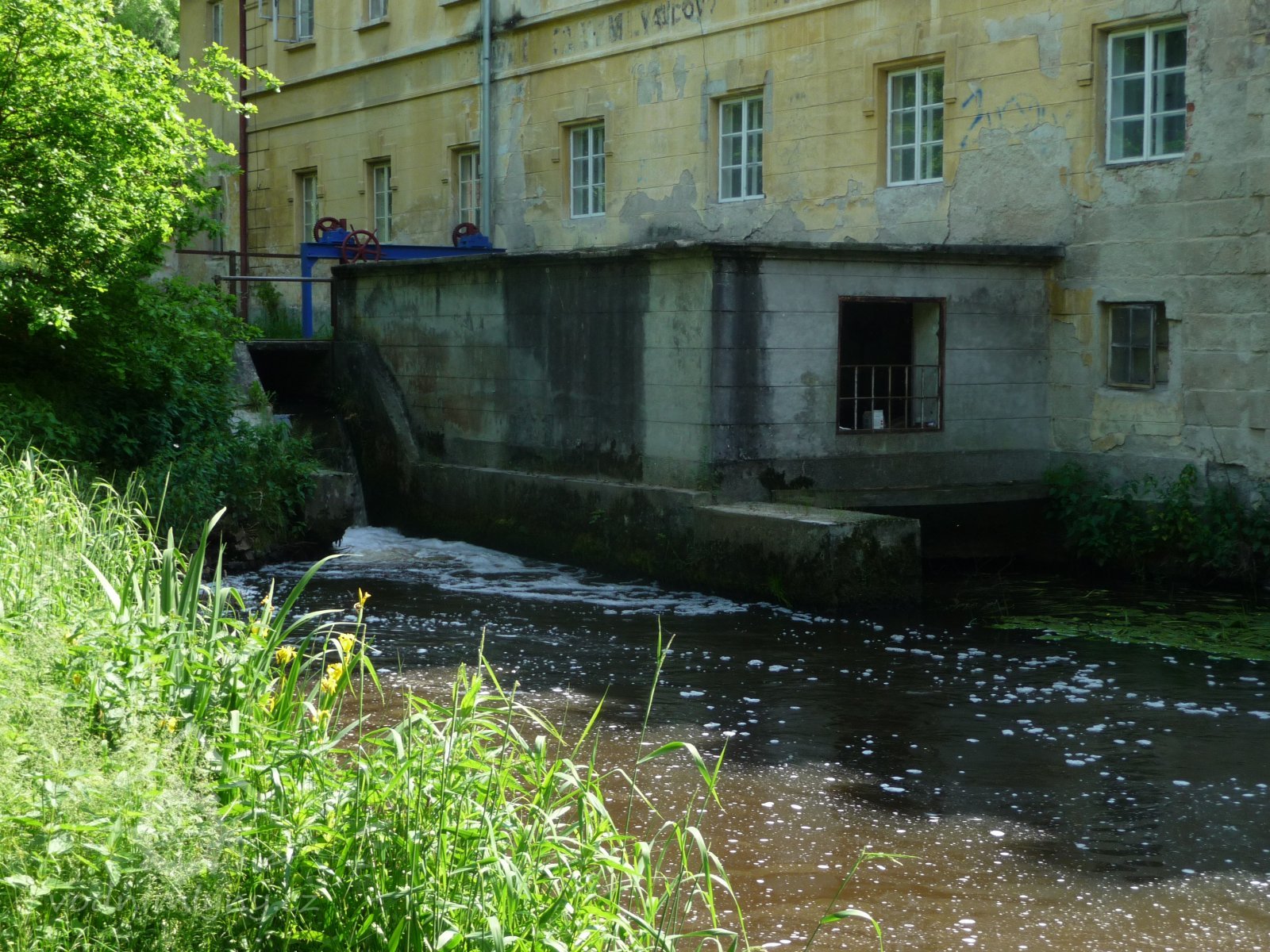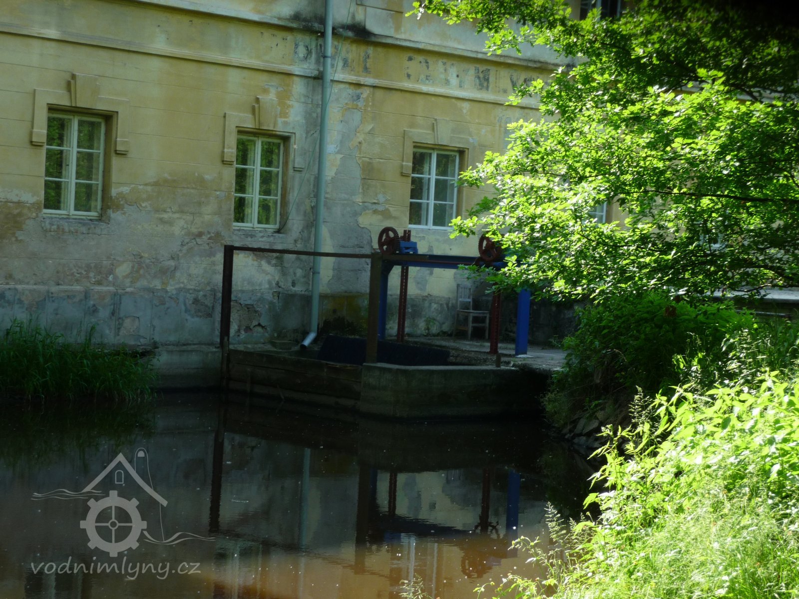 U mlýna je zachovalý turbínový domek s původním oknem.