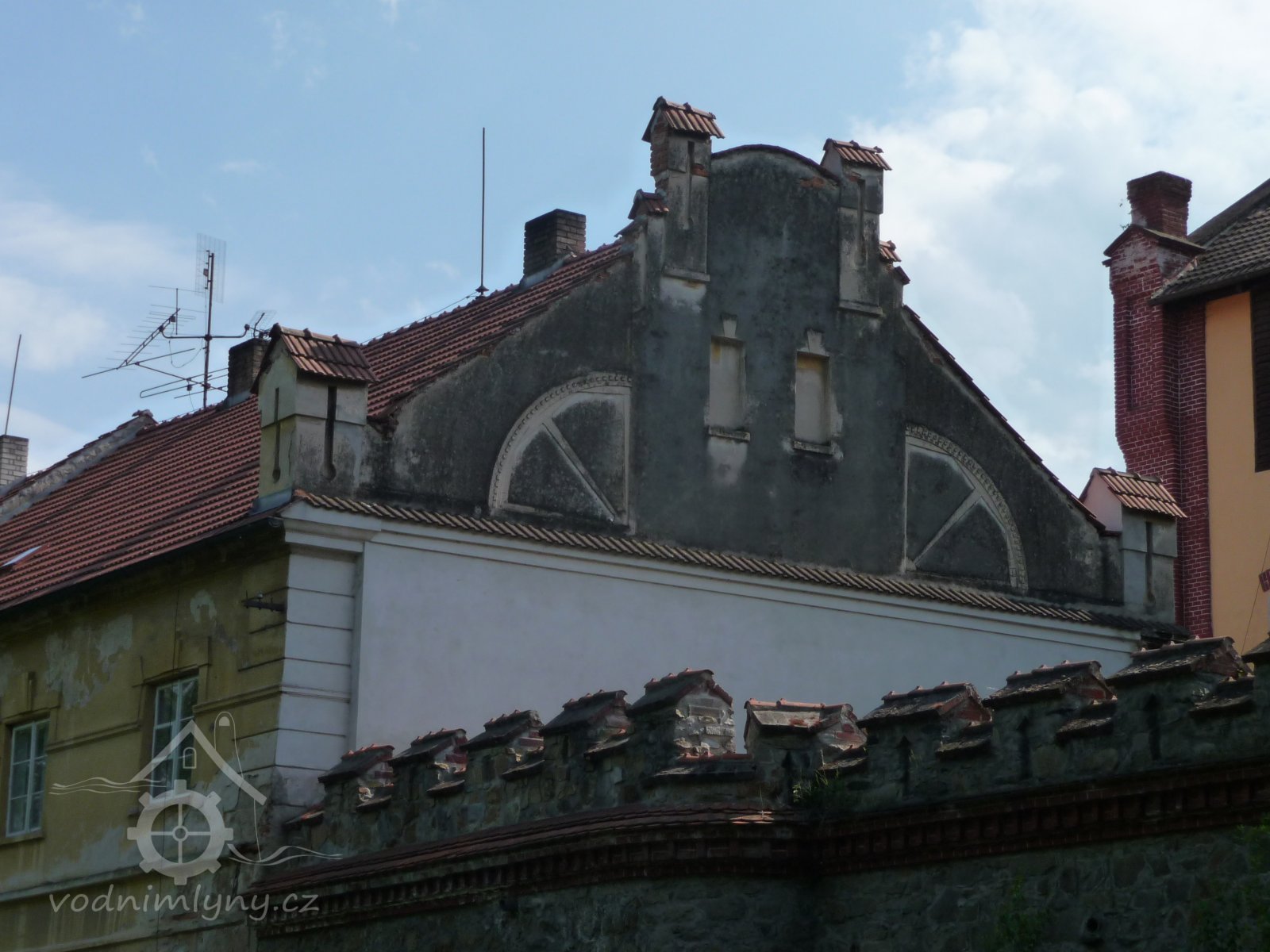 Patrová stavba obdélného půdorysu s průčelím výrazu ze 2. poloviny 19. století. Na nárožích věžičky s úzkými klíčovými "střílnami". Východní průčelí (náležící ku Zlaté stoce) s betonovým kubusem náhonu. Nároží plasticky bosovaná, plocha fasády s bosáží do hmoty. V přízemí jsou okna v horní části lemována pravoúhlou vystouplou šambránou se zdůrazněným klenákem. Horní patro s obdobnými šambránami, navíc s římsou zhruba v polovině úrovně oken. Na severu a jihu trojúhelný štít, po stranách již zmíněné věžičky, rovněž pod zaobleným vrcholem štítu dvojice věžiček. Po stranách štítových ploch zdobené čtvrtkruhy mlýnského kola. Interiér nebyl zpřístupněn.