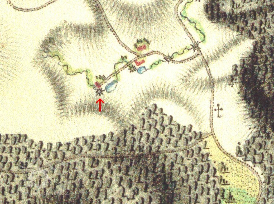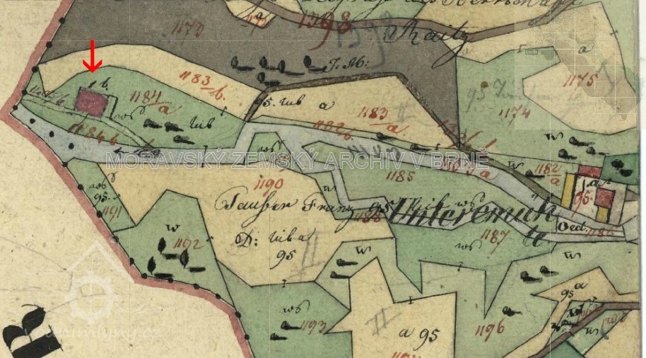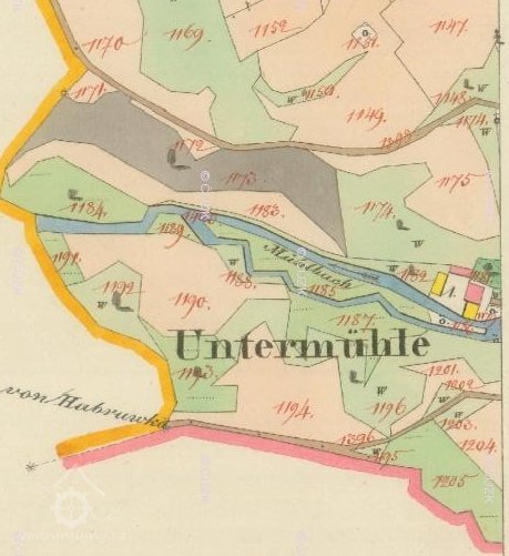 Mlýn je zcela jasně vyznačen na I. vojenském mapování. Na II. a III. vojenském mapování chybí. Stavba je dokreslena na Indikační skice z roku 1826. Na Císařském povinném otisku zakreslena není. (RŠ)