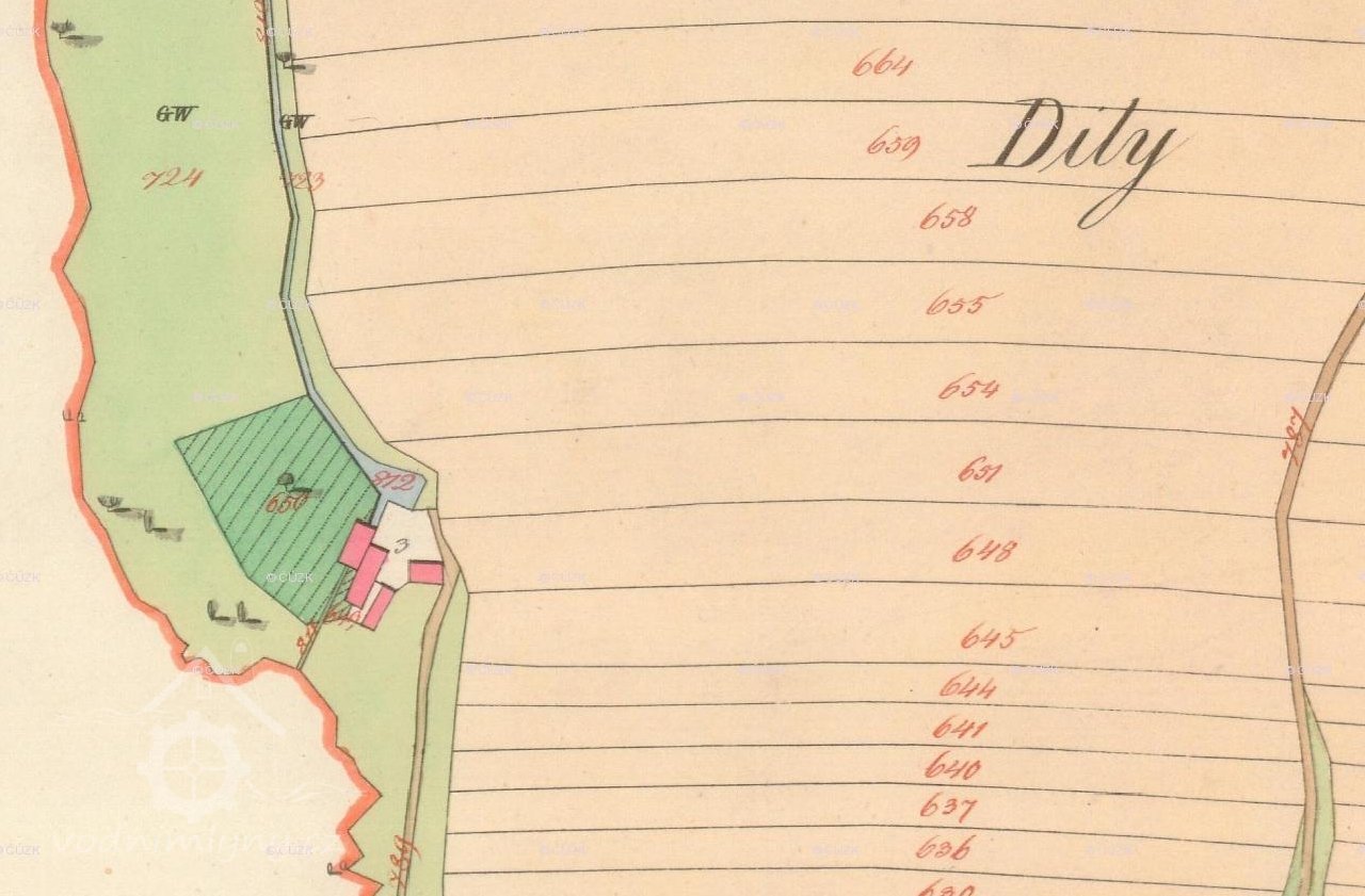 V roce 1930 byl majitelem mlýna Jan Spružina, potok se nazýval Velatický .