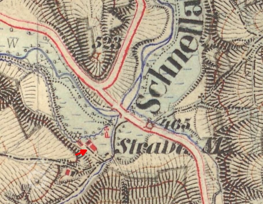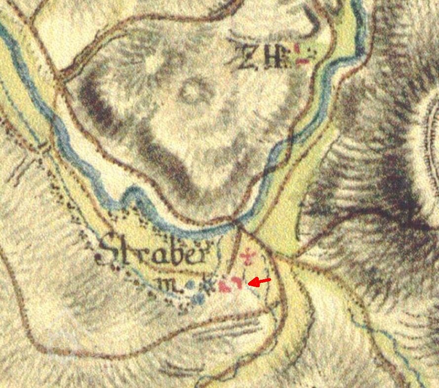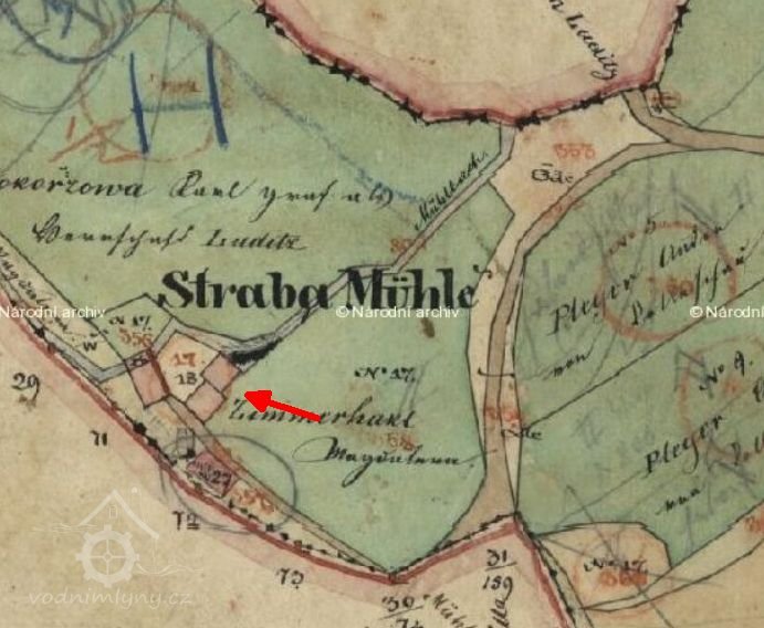 Na historických mapách je uváděn jak Straba, Strabovský ml.