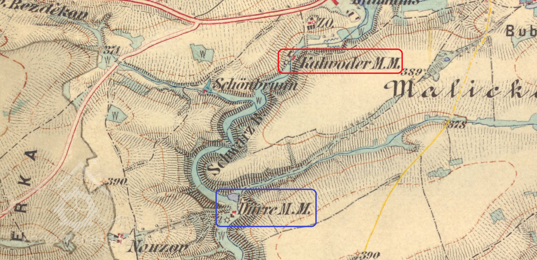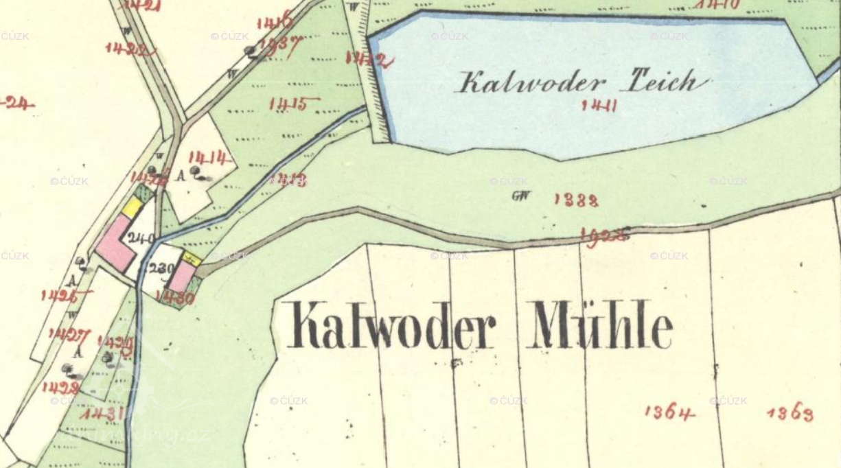 První zastávkou byl Kalivodův mlýn, také Kopřivův mlýn č.p. 171, Unhošť, který leží na horním toku Černého potoka. Nejstarší historie mlýna neznámá. První zmínky o mlýně jsou až z 18. století. Do roku 1876 nesl mlýn název Kalivodův, od roku 1876 jsou známi první majitelé, manželé Josef a Marie Kopřivovi. Následnými majiteli byli manželé Václav a Alžběta Oličovi a od roku 1930 spoluvlastníci unhošťského pivovaru, Antonie Urbanová a bratři Josef, František a Emanuel Urbanovi.