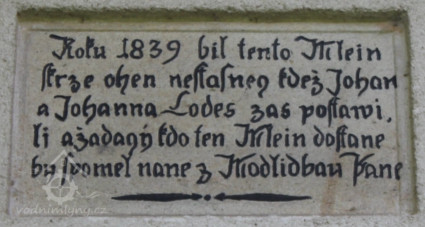 V roce 1839 byl mlýn obnoven po ničivém požáru.