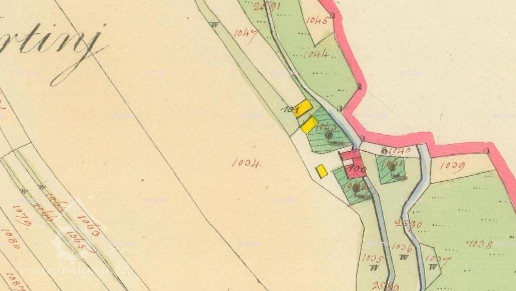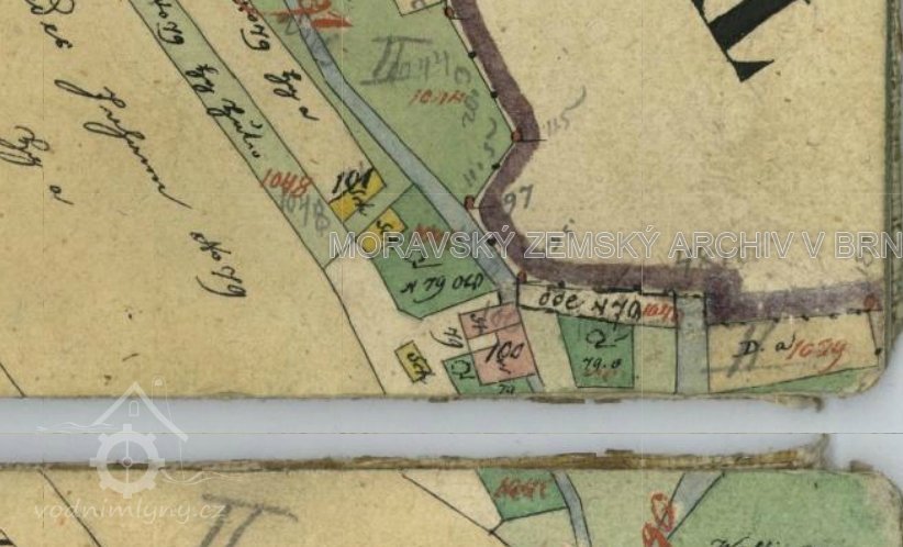 PopisV roce 1930 pohání mlýn kolo na svrchní vodu s průtokem 0.2 m3/s, spádem 4.25 m o výkonu 7.35 HP.