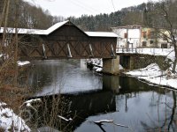 První dřevěný most přes Jizeru nechal postavit mlynář v r. 1893. Most nebyl zastřešený a v r. 1898 ho vzala velká voda. V roce 1922 nechal postavit mlynář Janoušek nový dřevěný, krytý most. Dřevo nechal dovézt až Vítkovic v Krkonoších. Most slouží svému účelu dodnes, je evropským unikátem.