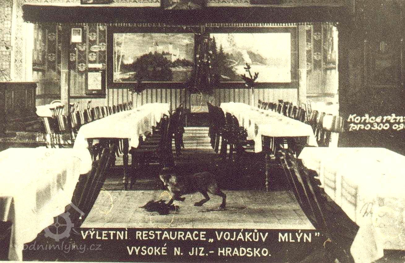 Mlýn měl povoleno prodávat lahvové pivo. U potoka pod mlýnem bylo na louce sbito několik dřevěných stolů a lavic k posezení a kuželník. V 80. letech 19. století se ve mlýně pořádaly nedělní muziky. I po požáru (v roce 1913) zde pokračoval kulturní život. Noví majitelé přistavěli taneční sál a verandu pro muzikanty, u potoka zbudovali střelnici, kuželník a na louce vedle mlýna se hrávalo divadlo. Každý týden rovněž pořádali taneční večírky.
