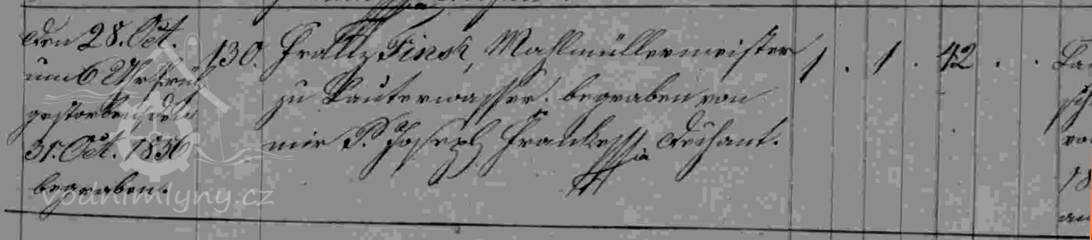 28. 10. 1856 zemřel ml. mistr Franz Fink ve věku 42 let.