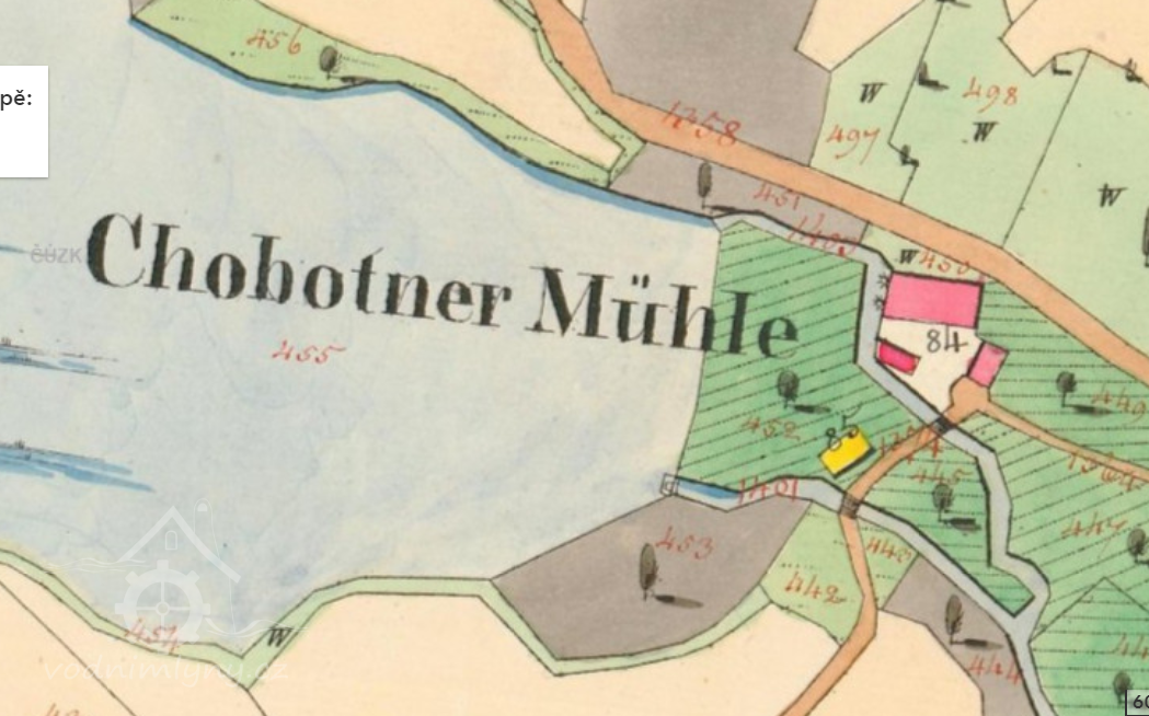 Ve zdech mlýnů na Rakovci jsou osazeny kamenné kvádry s vytesanými iniciálami majitelů mlýna a udělením vodního práva. Konkrétně na Chobotě jsou to iniciály R.S. (Richard Skoupil) a rok 1884. Tento kámen byl při úpravě mlýna na rekreační středisko (OZAP Praha) v 80. letech 20. století vyjmut ze zdiva mlýna a skončil na skládce.