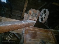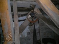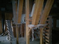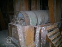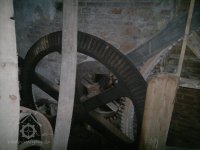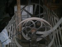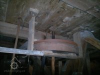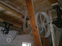 rolny polozkříženého řemenového převodu k pohonu mlecích kamenů, 2013, © David Veverka, (Prvky na obrázku: transmise, řemenice, převody)