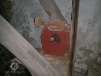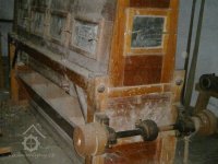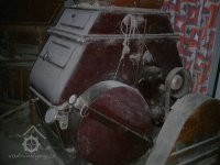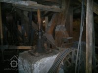 pohon kamenného mlecího složení od transmise, 2013, © David Veverka, (Prvky na obrázku: transmise, řemenice, převody)
