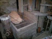 zde je vidět rotor - 6-ti boký hranol se síty moučného vysévače, 2013, © David Veverka, (Prvky na obrázku: vysévač hranolový)