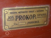 výrobní štítek na stolici fa Josef Prokop a synové - Pardubice, 2013, © David Veverka, (Prvky na obrázku: značka výrobce na technologickém vybavení)