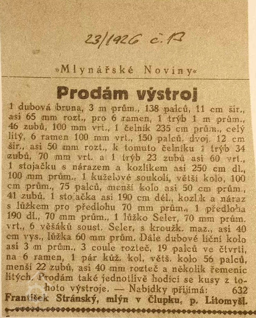 válcová stolice, litinová skříň, výrobek fa Prokop a Synové Pardubice z 30. let 20. stol., 2013, © David Veverka, (Prvky na obrázku: válcová stolice)
