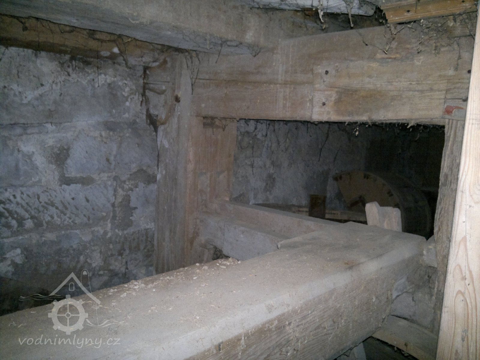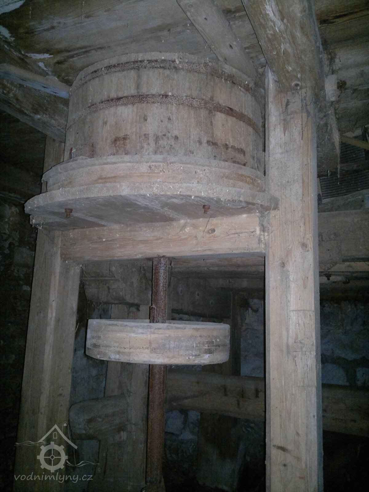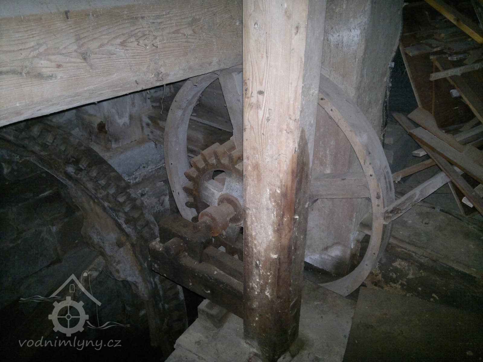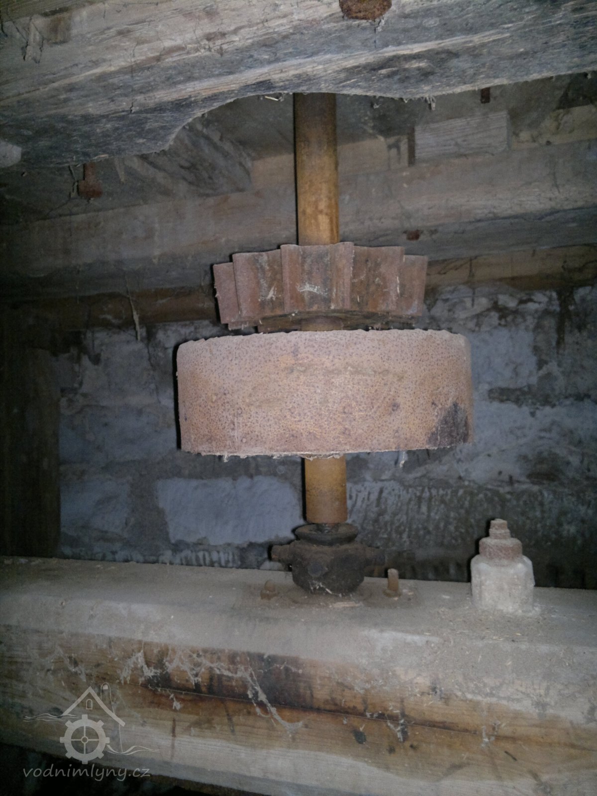 spodek - lehčení obyčejného mlecího složení (obyčejné složení modernizováno), 2013, © David Veverka, (Prvky na obrázku: transmise, řemenice, převody)