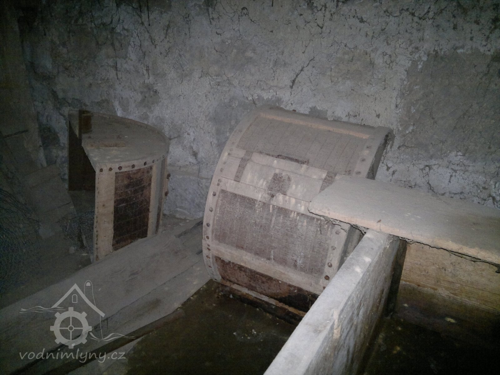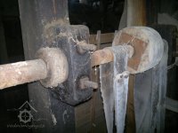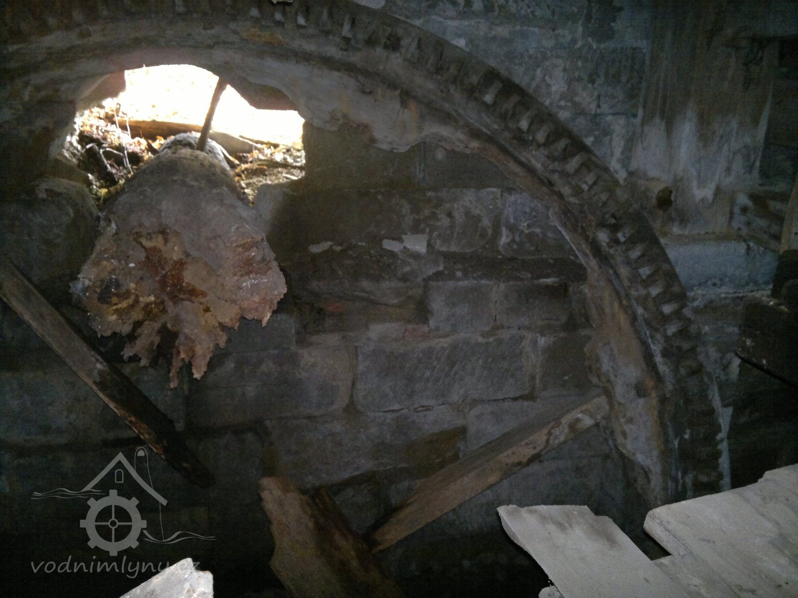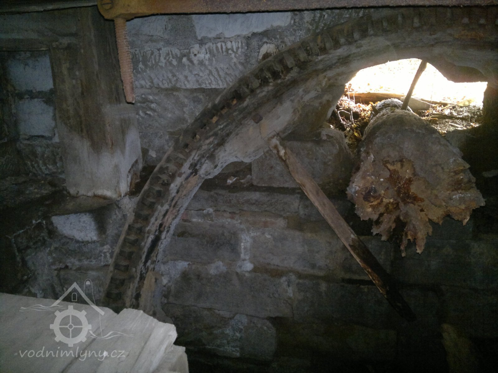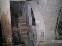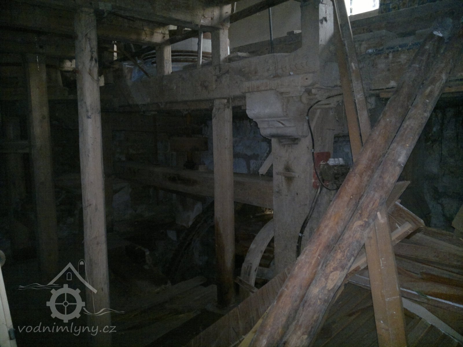 spodek - lehčení obyčejného mlecího složení (obyčejné složení modernizováno), 2013, © David Veverka, (Prvky na obrázku: transmise, řemenice, převody)