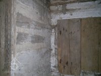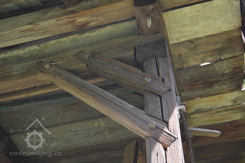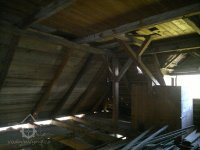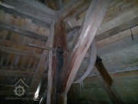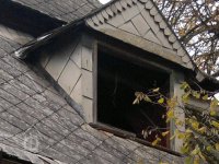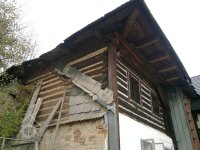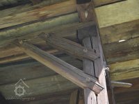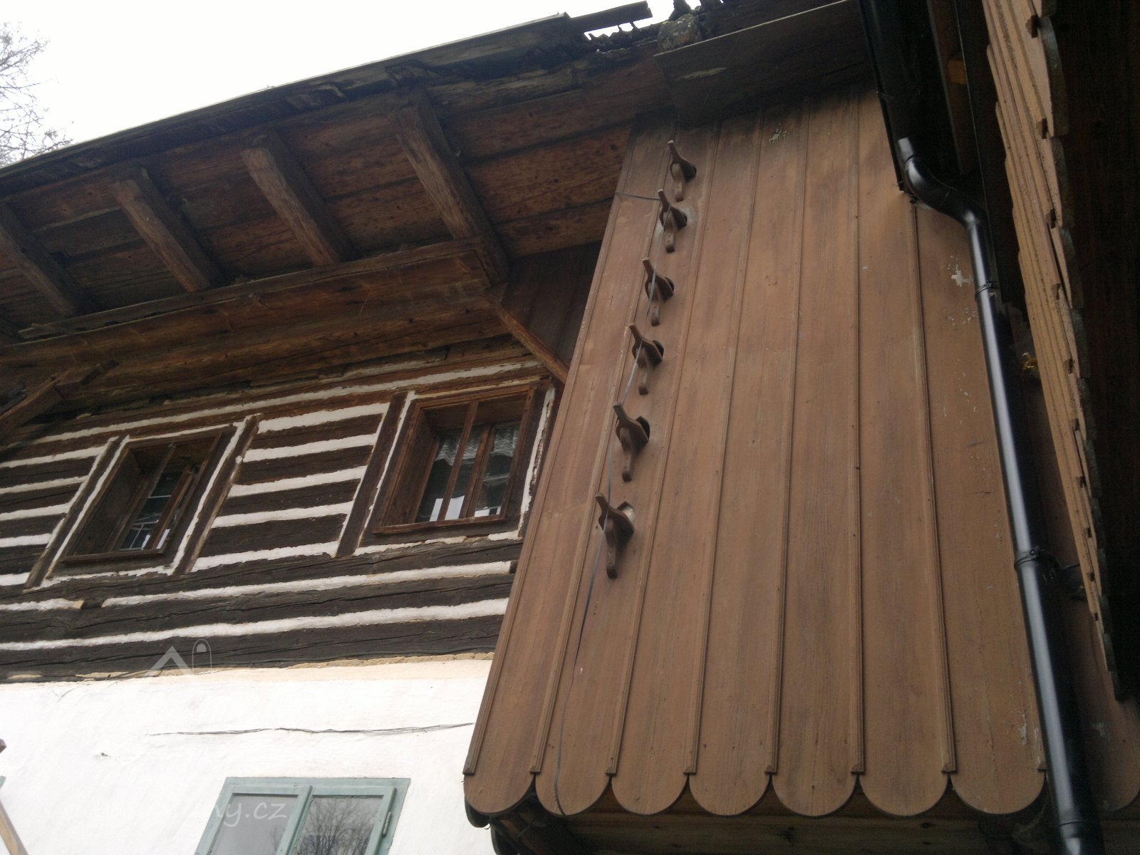 pohled pod mansardovou střechu a na nároží roubené části, 2013, © David Veverka