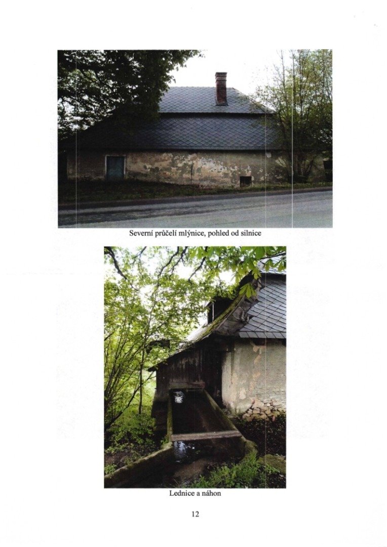 pohled ze silnice na lednici, náhon a část mlýnice s dvěma vstupy, 2013, © David Veverka