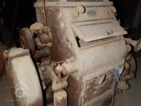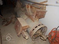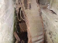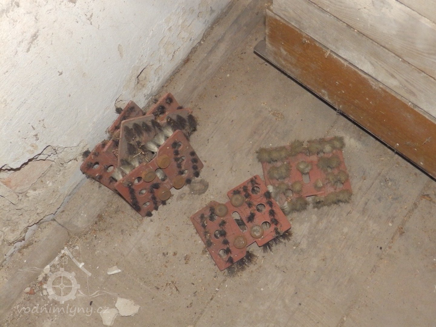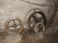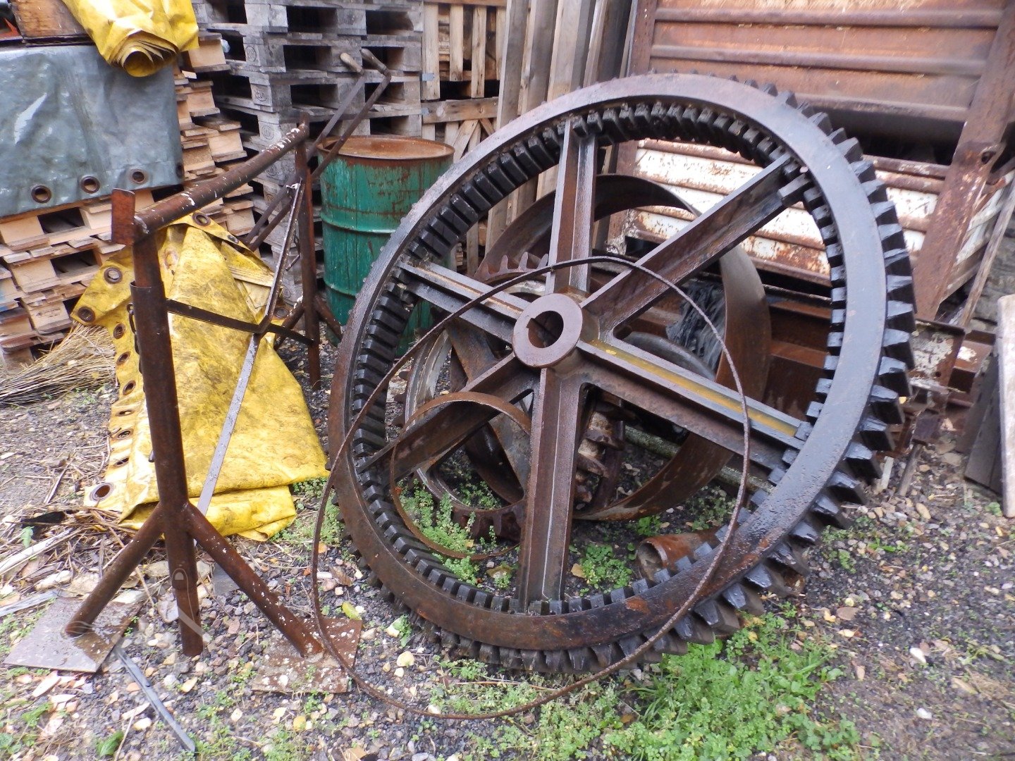 Zbytky palečného kola, 2019, © doxa, (Prvky na obrázku: transmise, řemenice, převody - paleční kola, pastorky a cévníky (řemeslný výrobek))