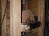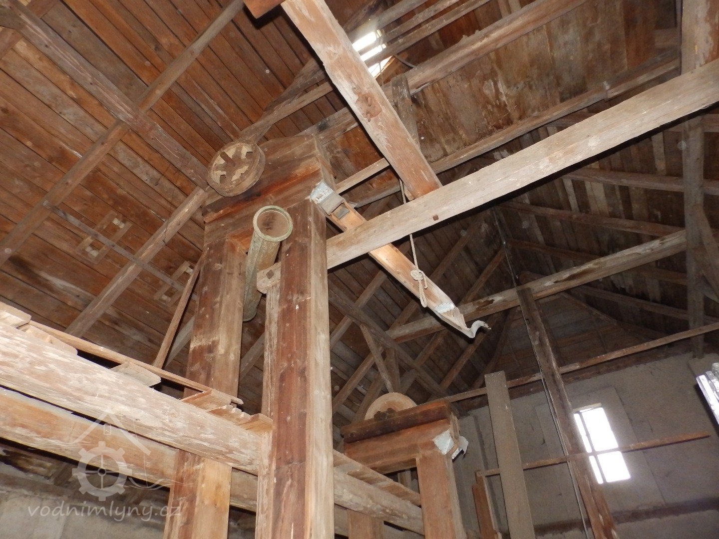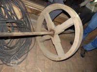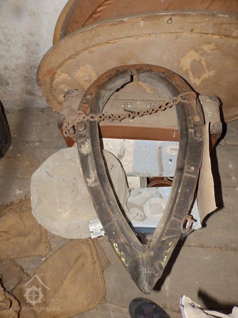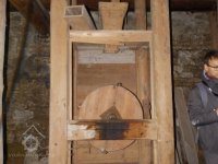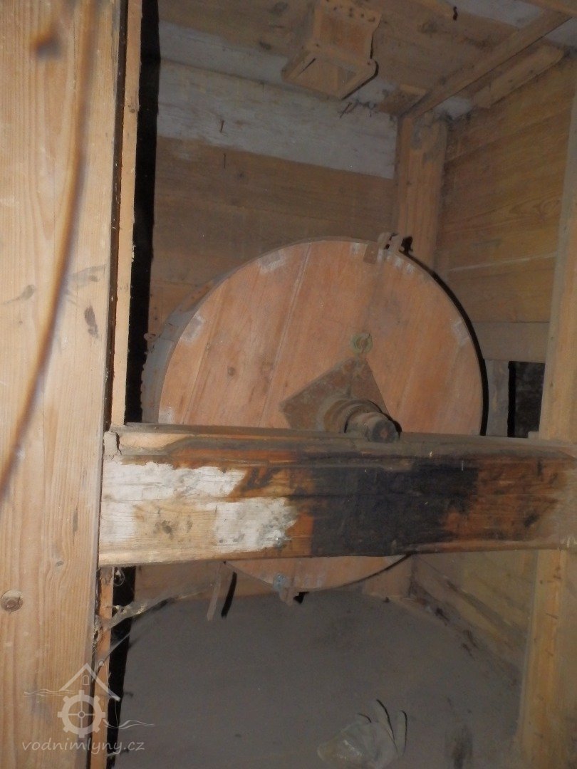 Rozeta palečného kola, 2019, © doxa, (Prvky na obrázku: transmise, řemenice, převody - paleční kola, pastorky a cévníky (řemeslný výrobek), transmise, řemenice, převody - transmisní hřídele s řemenicemi (výrobek průmyslový i řemeslný))