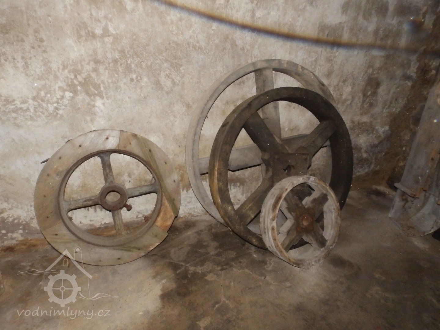 Kola transmisí, 2019, © doxa, (Prvky na obrázku: transmise, řemenice, převody - paleční kola, pastorky a cévníky (řemeslný výrobek))