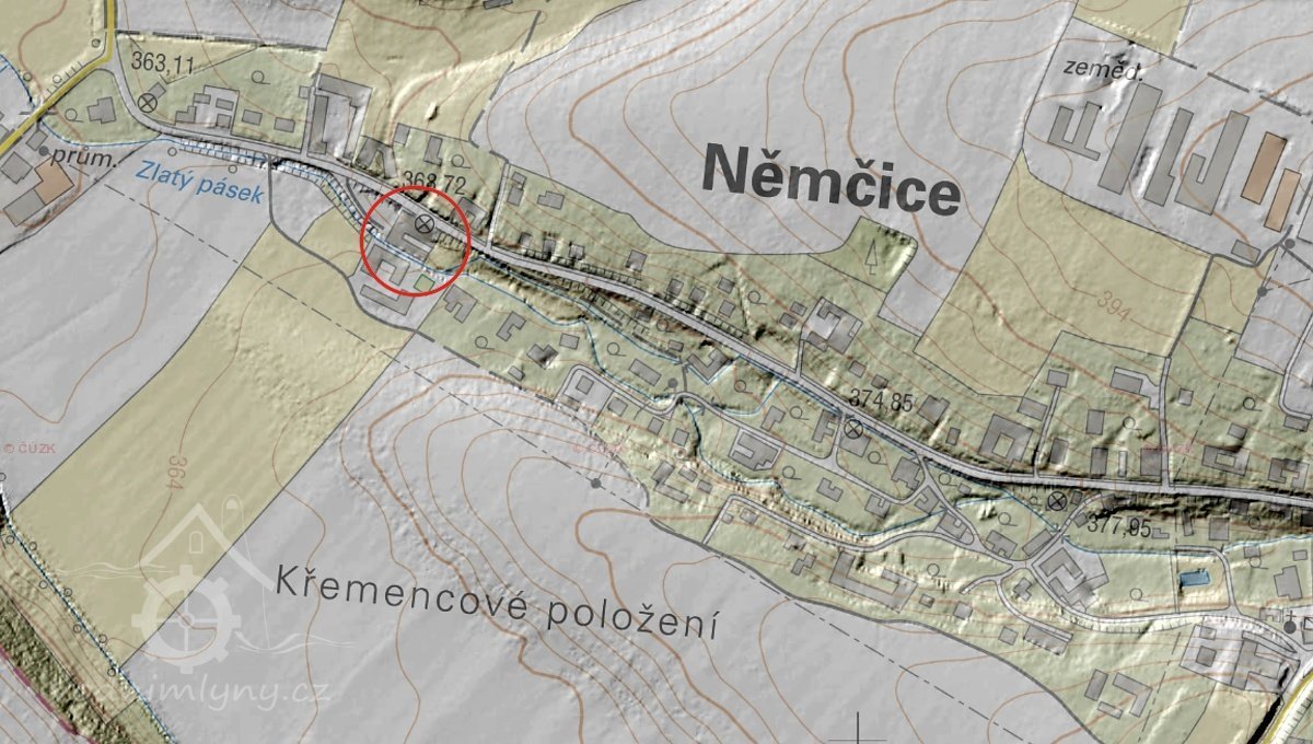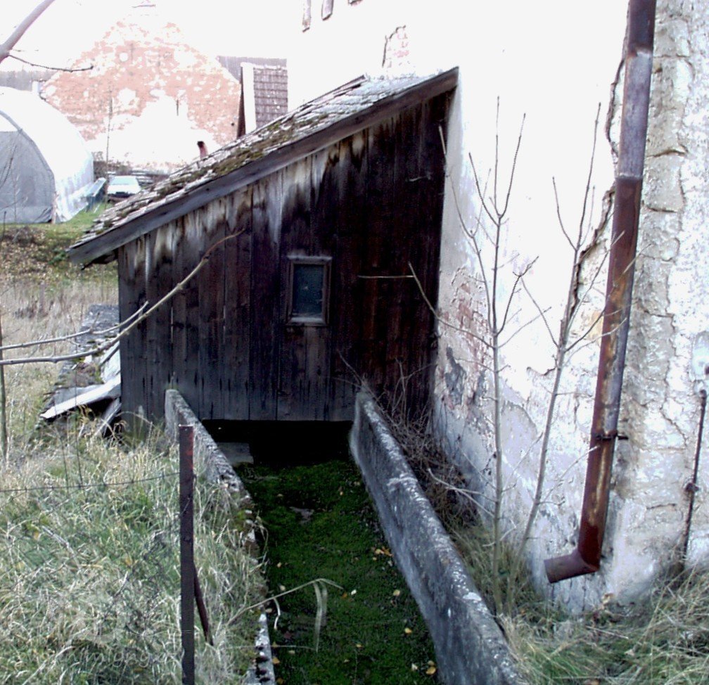 Náhon vyskládaný z pískovcových kvádrů a propusť u jalového žlabu, 2002, © Urbánek, (Prvky na obrázku: náhon, jalový žlab)
